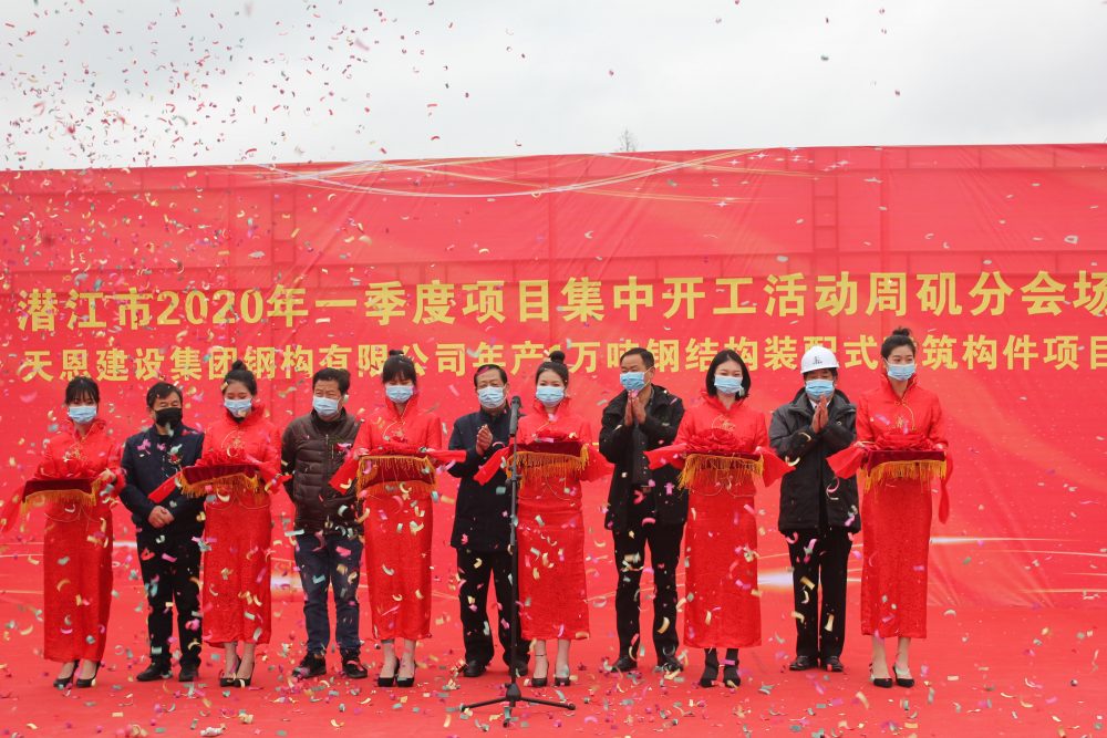 與此同時,天恩集團鋼結構裝配式建筑項目在潛江市周磯辦事處分會場開工。該項目占地面63.43畝,總投資1億元。預計2020年12月建成投產,屆時將創造長期性就業崗位300個,新增工業產值2億元,為打造潛江綠色建筑產業園和推動地方經濟社會快速發展作出積極貢獻。